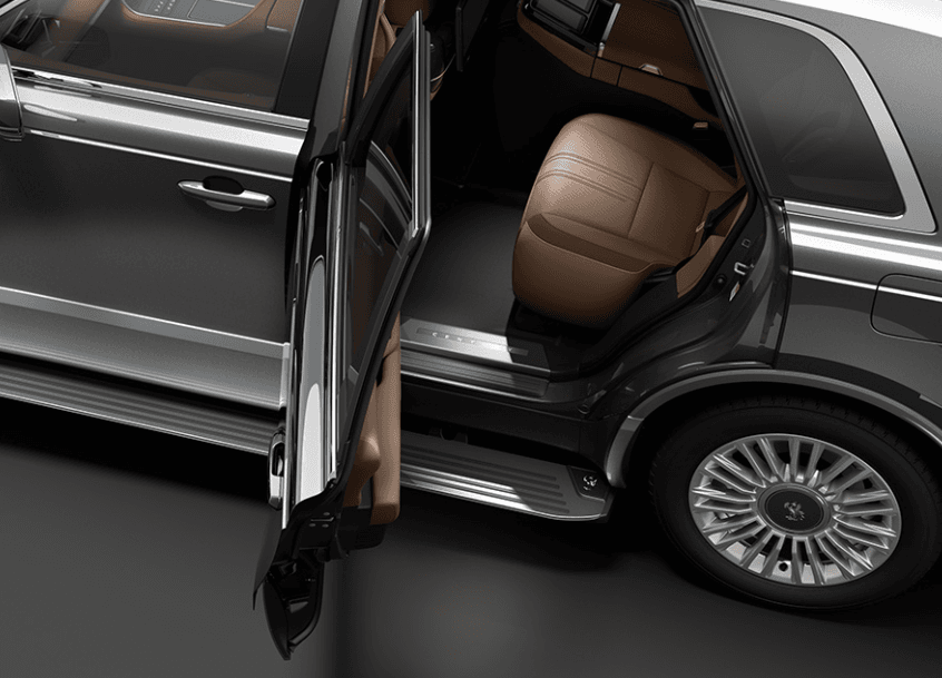 さらに、自動電動ステップが連動して展開されるため、足元からの乗り降り動作が非常に楽になります。高齢者やVIP乗車を前提とするユーザー層にとって、これは大きな利点です。