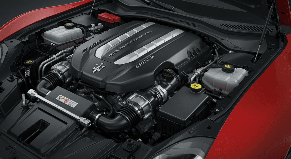MC20の核となるのは、マセラティが自社で開発・製造した3.0LツインターボV6「ネットゥーノ」エンジンです。このエンジンは、F1エンジン由来の特許取得済みプレチャンバー燃焼技術を特徴としており、最高出力630馬力(469 kW)、最大トルク730 Nmを発揮します。この強力なパワーユニットが、MC20を真のスーパーカーたらしめているのです。