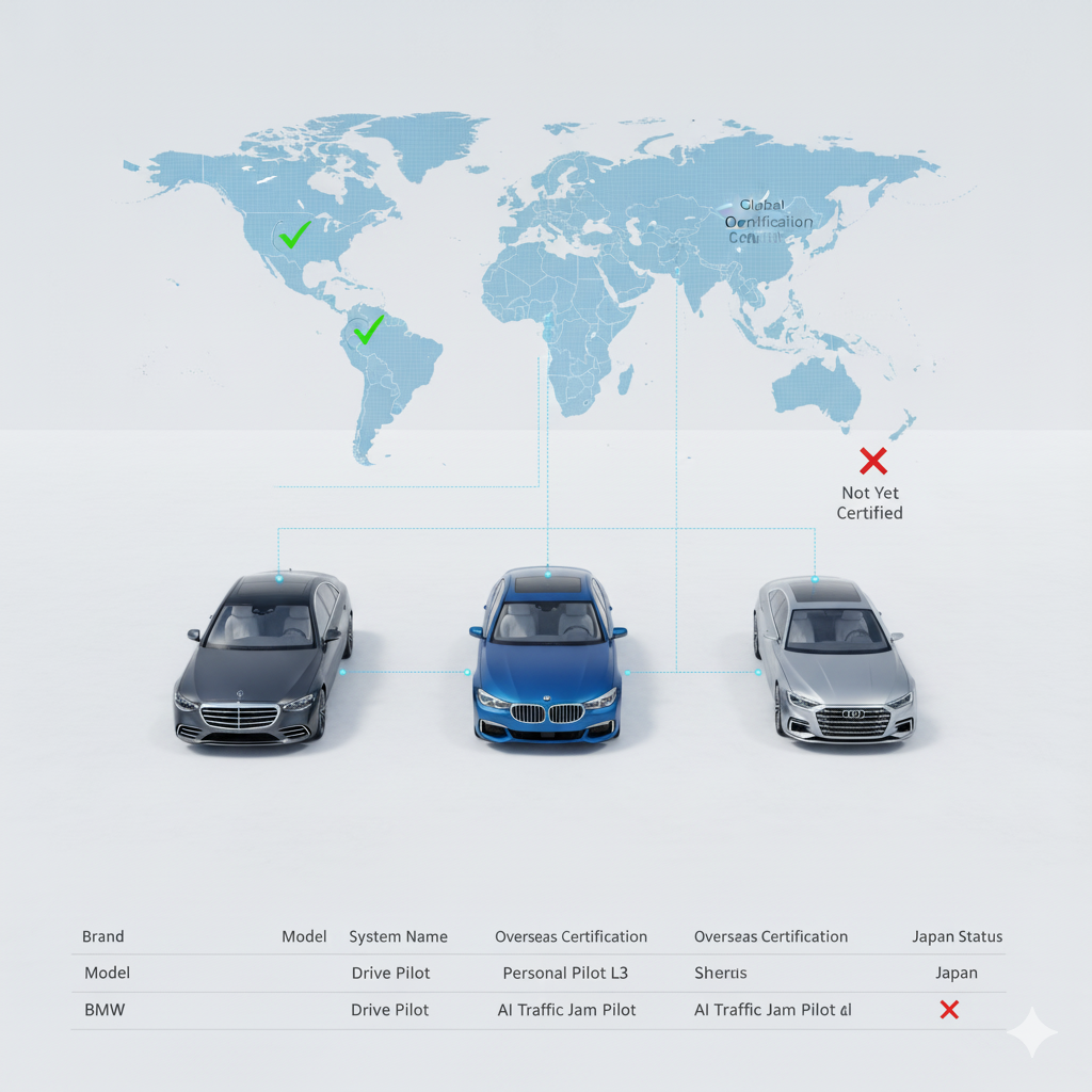 🌍外国車自動運転レベル3 車種一覧:グローバルと日本の比較