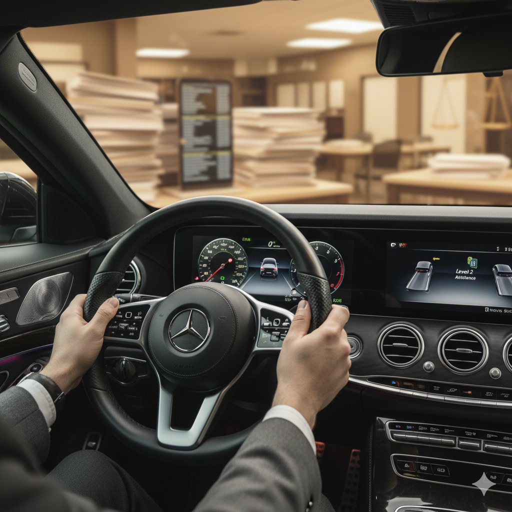 結論から言うと、メーカー側が日本の法規制下でのレベル3の責任の所在を完全に担保しきれないリスクを避けていると考えられます。レベル3では、システム作動中に事故が起きた場合、システムに不具合がなければドライバーの責任となり、システムに不具合があればメーカーの責任となります。**前述の通り、**日本ではEDRの記録を基に警察が詳細な事故調査を行います。外国車メーカーが、日本特有の交通状況下で自社システムが原因となる可能性を完全に排除し、かつ法的な責任をすべて負う覚悟を決めるには、非常に大きなリスクが伴います。したがって、現状では、ドライバーが常に監視義務を負うレベル2の高性能な運転支援システム(例:メルセデス・ベンツのインテリジェントドライブなど)を提供することで、法的なリスクと開発コストを抑えつつ、ユーザーに安全性をアピールしていると言えるでしょう。
