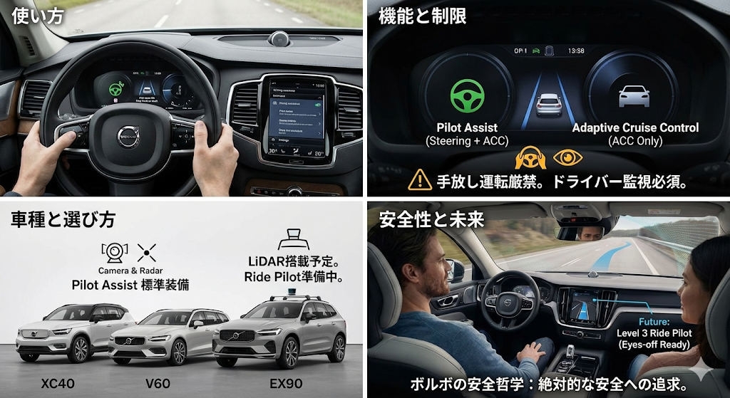 現在、日本市場における導入状況と今後の見通しはどうなっているのでしょうか。これからボルボ車を検討される方にとって、既存のボルボのパイロットアシストとアダプティブクルーズコントロールの違いを正しく理解することは、購入後の満足度を左右する重要な要素となります。さらに、搭載車種による機能差と選び方のポイントを知ることで、ご自身のライフスタイルに最適な一台を見つける手助けとなるはずです。