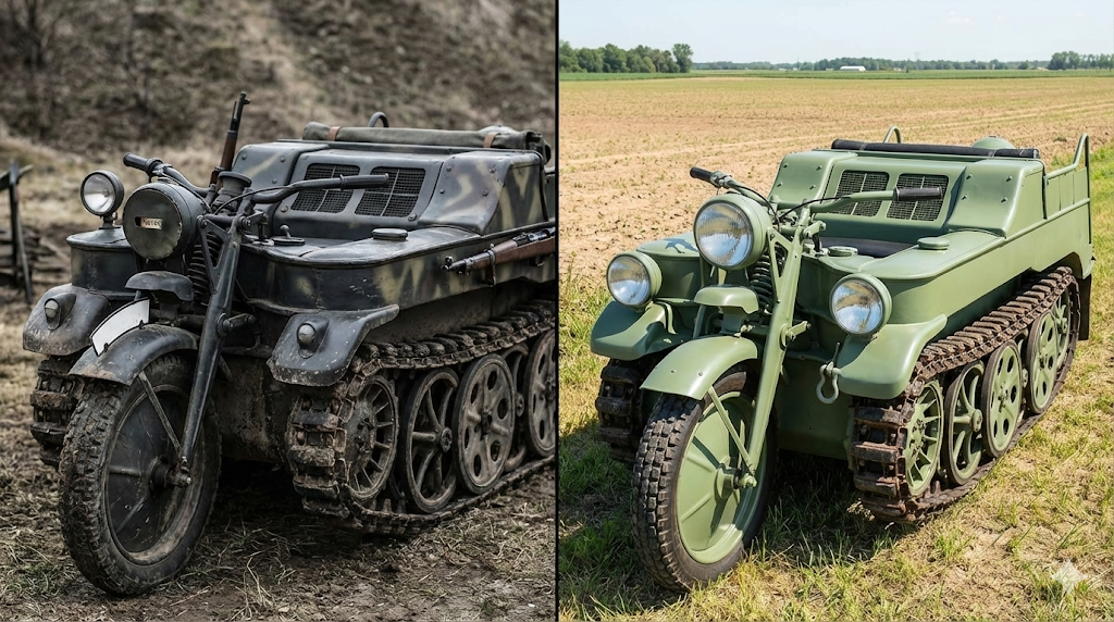 市場でケッテンクラートを探す際、必ず確認しなければならないのが「製造時期」です。大きく分けて、1941年から1944年にかけて製造された「戦時生産モデル」と、終戦後の1948年から1949年にかけて製造された「戦後農業用モデル」が存在します。