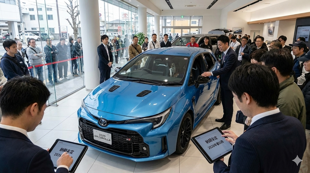 公式サイトの納期案内において、GRヤリスには具体的な月数が記載されているのに対し、GRカローラは「詳しくは販売店にお問い合わせください」という表記にとどまっています。これは、生産台数がGRヤリスよりも少なく、全国の販売店に対する割り当て台数が極めて限定的であることを示唆しています。実際に販売現場からは、再開直後に割り当て分が完売し、次回の受注再開時期が未定であるという声も多く聞かれます。
