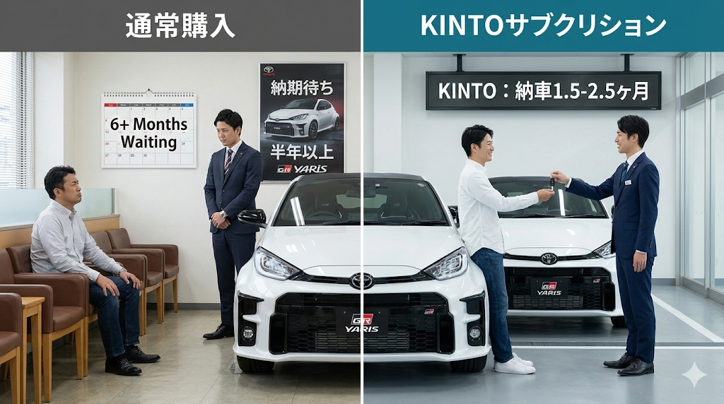 なぜこれほどの差が生まれるのかというと、KINTOは車両の所有権がユーザーではなく運営会社にあるため、即時の転売を防ぐことができるからです。GRヤリスのような人気車種は海外への転売目的で購入されるリスクがありますが、KINTOであればその心配がなく、純粋に乗ることを目的としたユーザーに車両を届けることができます。メーカーとしても、契約終了後に良質な中古車(認定中古車)として自社ネットワークに戻ってくるメリットがあるため、優先的に車両を供給していると考えられます。