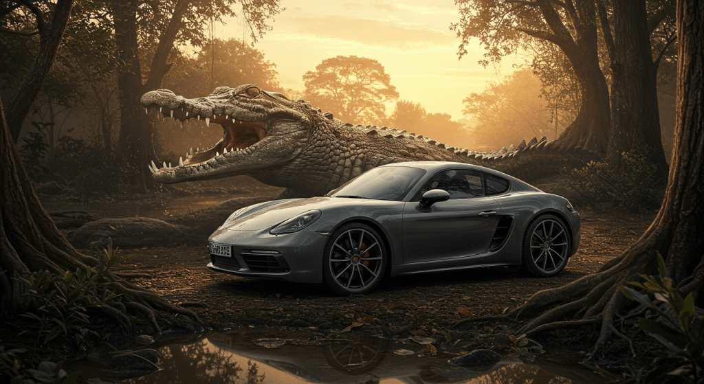 ポルシェの「ケイマン」という名前には特別な意味が込められています。この名前は、南米や中央アメリカに生息するワニの一種「ケイマン(Cayman)」に由来します。この動物は俊敏で力強い動きを持ち、小柄ながらも大胆で鋭い捕食者として知られています。ポルシェはこの「ケイマン」の特性を、自社が生み出したスポーツカーに投影しました。特に、コンパクトでありながら高性能なケイマンの特徴が、この名前と見事に一致しています。