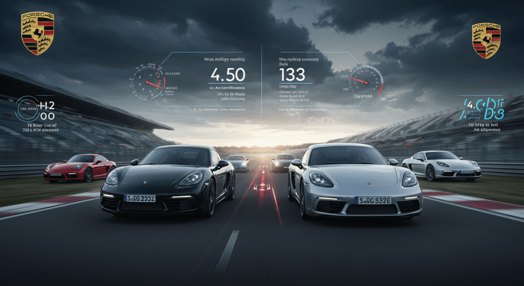 718ケイマンではターボエンジンの採用により、出力とトルクが向上しました。例えば、ベースモデルの718ケイマンは最高出力300馬力を発揮し、0-100km/h加速がわずか4.9秒と、981ケイマンに比べて大幅なパフォーマンス向上を実現しています。一方で、981ケイマンの自然吸気エンジンは、レスポンスの良さや高回転域での伸びが魅力とされており、ドライビングの楽しさを重視する人に高く評価されています。